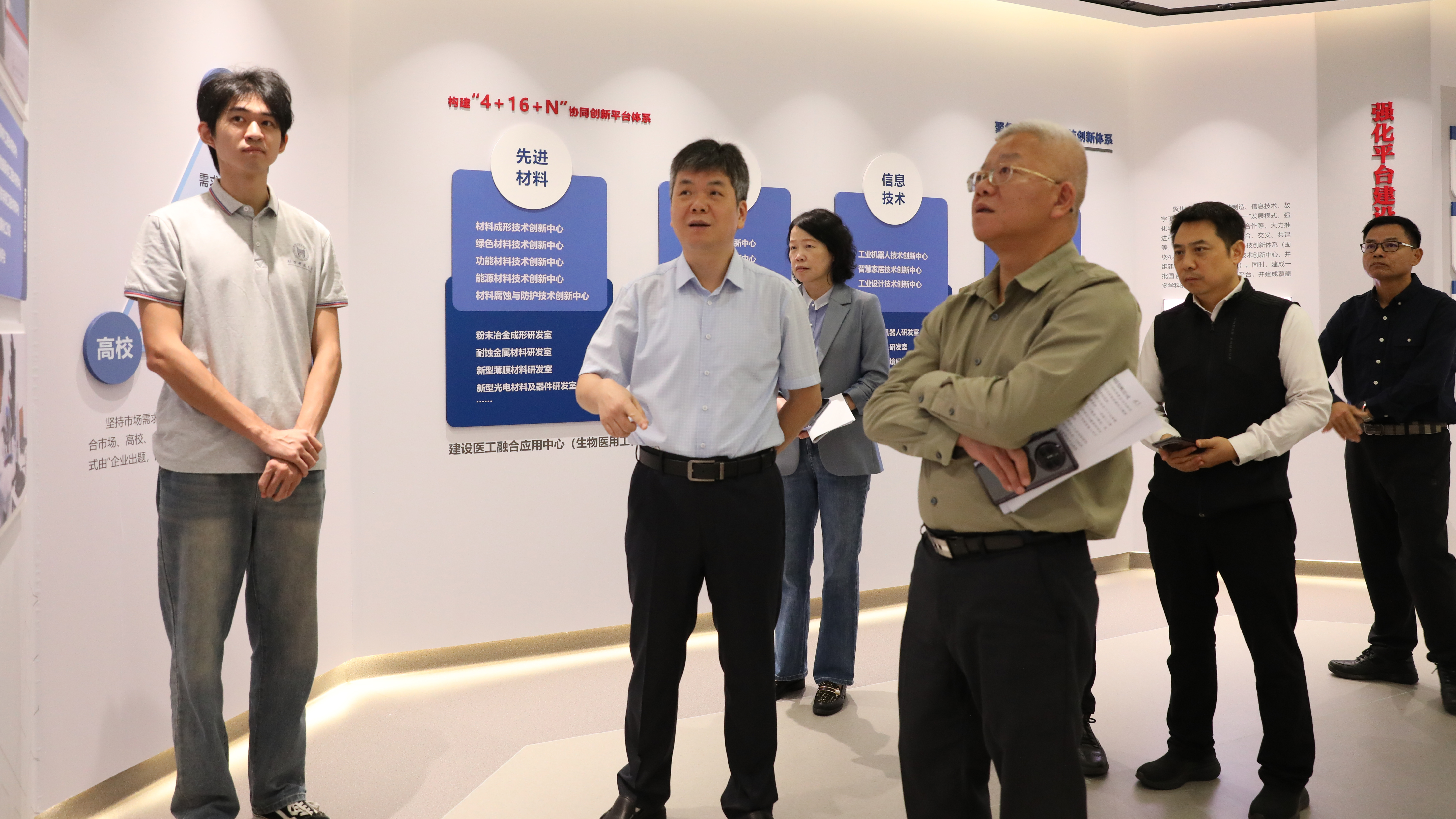 刘铭恩一行参观了学院院史馆,了解学院发展情况。何新波向调研组详细介绍了学院人才培养、科技创新、成果转化、服务地方的办学成效。
