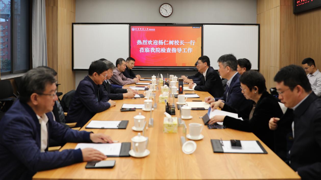 何新波向校领导详细汇报了近年来学院各项工作发展情况、未来规划和需要学校支持事项。他表示,在学校和佛山市的大力支持下,北顺院在党建工作、师资队伍、人才培养、科学研究、成果转化以及社会服务等方面取得了一系列成绩。建院以来,北顺院为广东省、佛山市的社会经济发展输送了大批高层次人才、持续产出一大批科技成果,做出了重要贡献。下一步,学院将接续奋斗、稳中求进、增压提速、提升内涵,深入探索“产业+教育+科技+城市”融合发展的新路径、新模式,全面深化校地合作,与校本部差异化发展、特色优势互补,努力建成具有重要影响力的研究生培养和创新创业高地,成为北科大投身粤港澳大湾区建设进行产教融合的“示范点”和学校“双一流”建设的重要组成部分。